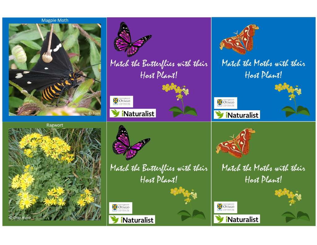 Print and cut out the squares. Paste the purple (butterfly), blue (moth) or green (plant) to the front of a foam or solid board, and paste the corresponding purple, blue, or green to the back of the board. There are 16 game pieces total – you can decide whether to play with just butterflies, just moths, or challenge yourselves with both mixed together. The pdf includes the answer key.